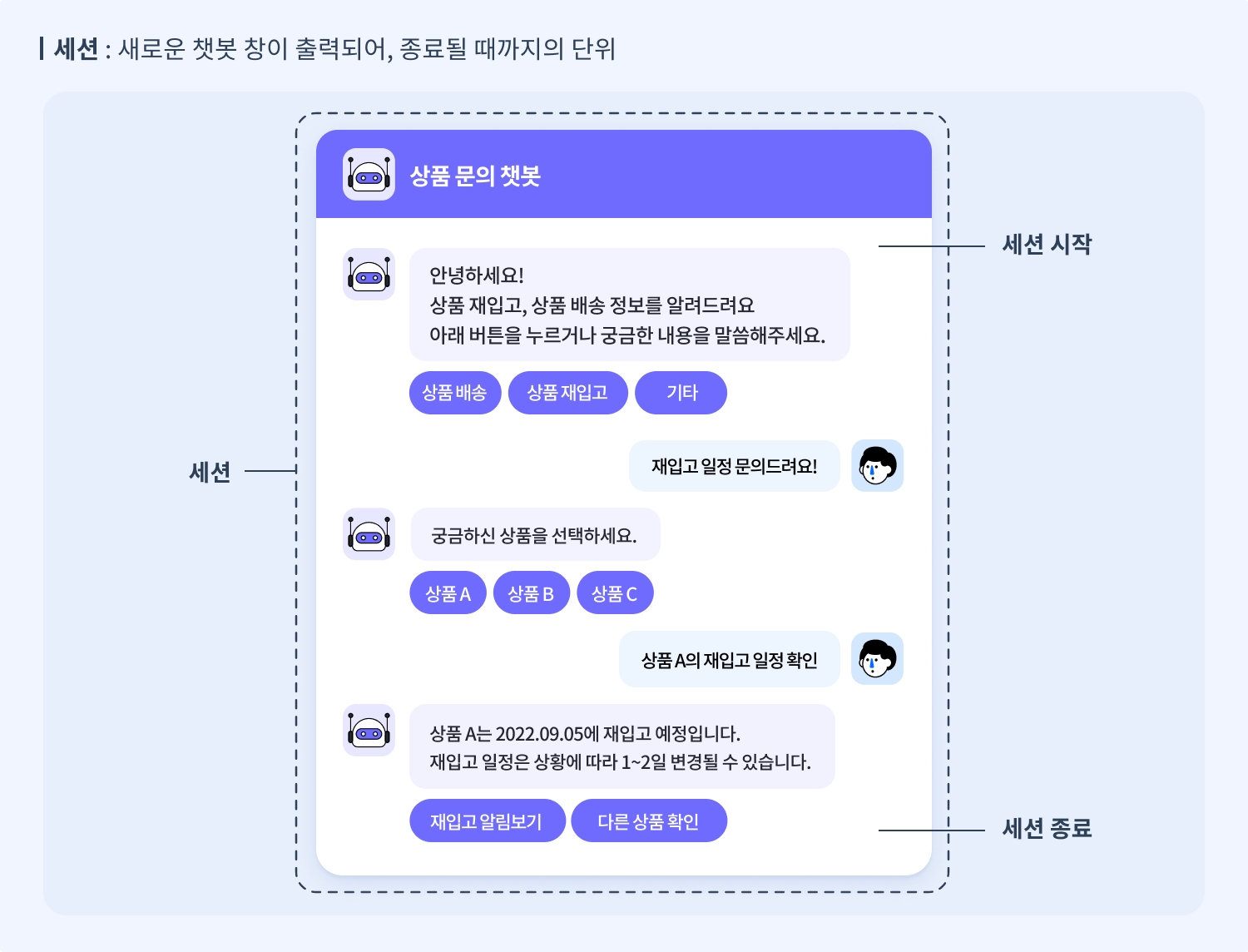 새로운 챗봇 창이나 서비스가 시작되어 종료할 때까지의 단위입니다.